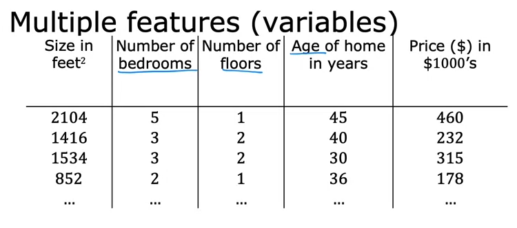 Instead of prediction house price with only the size of a house, we can use multiple features of a house to make a better prediction