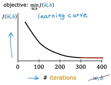 This graph is called Learning curve. As the iteration increases, the minimum cost should decrease. If the graph remains constant after enough iterations, we call that it has converged