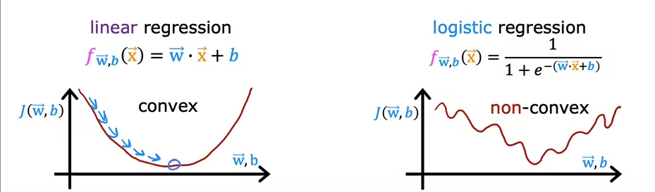Since logistic regression is a non-convex form, it has multiple local minimum. Thus, we cannot use the standard cost function which is a mean squared error function.
