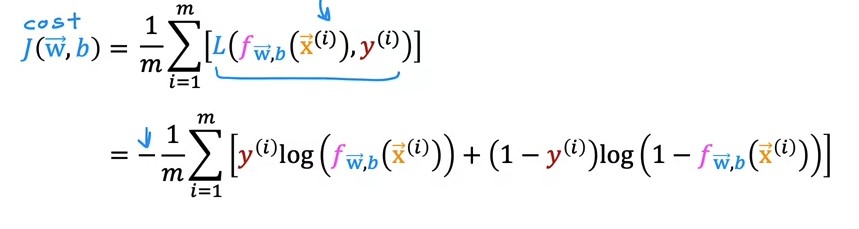 A key for cost function for logistic regression. We want to get a global minimum to find the most optimized w. However, squared error cost function yields multiple minimum. It makes us to use logarithmic cost function, which gives us 0 when the y equals to probability 0 or 1 we want.