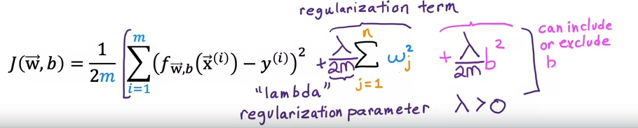 In some cases, we penalize the impact of b. We add lambda/2m * b^2.